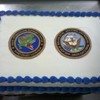 full sheet navy cake with frozen buttercream flips