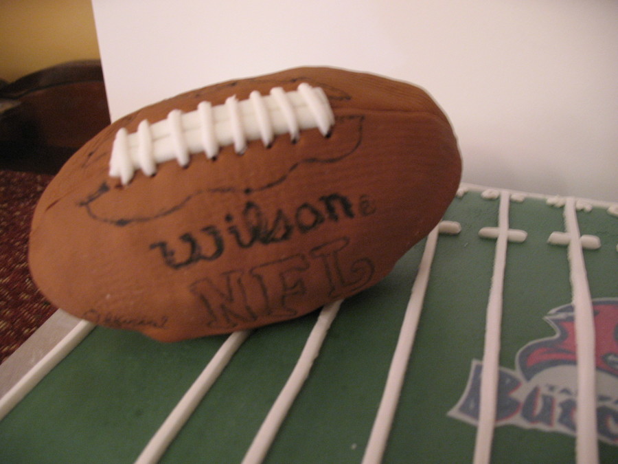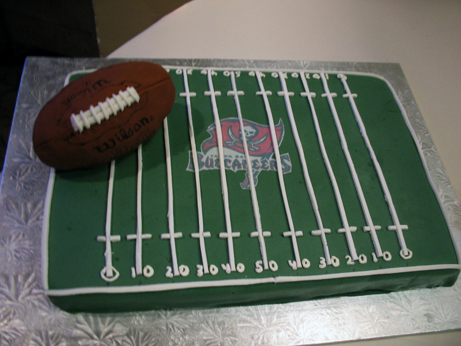 This is a Tampa Bay Buccaneer's Groom's cake. It is Margarita flavoured cake. The football is RKT covered in fondant, with details added with an edible food marker. The goomsmen loved it. Here in Canada it is not as traditional to have a Groom's cake yet so it was a pleasant surprise for him!!