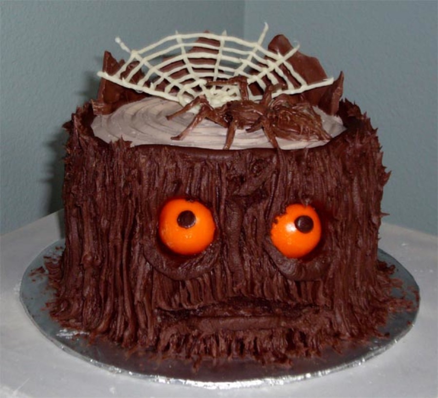 Chocolate cake with chocolate buttercream frosting. The spider and web are made of chocolate