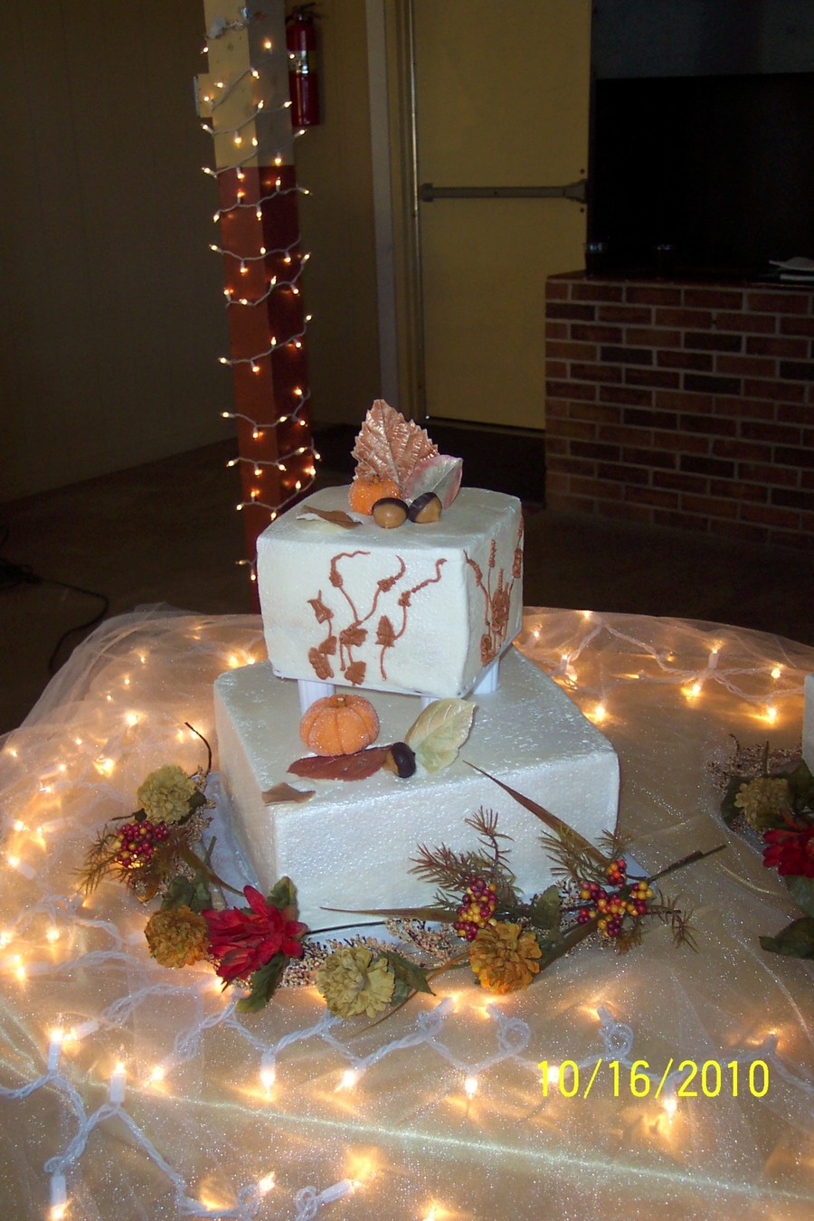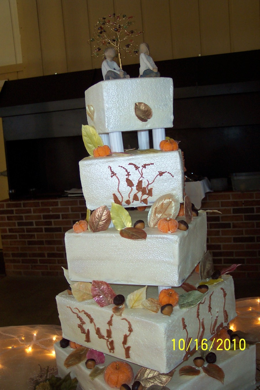 white chocolate leaves, marzipan pumpkins and carmel acorns.