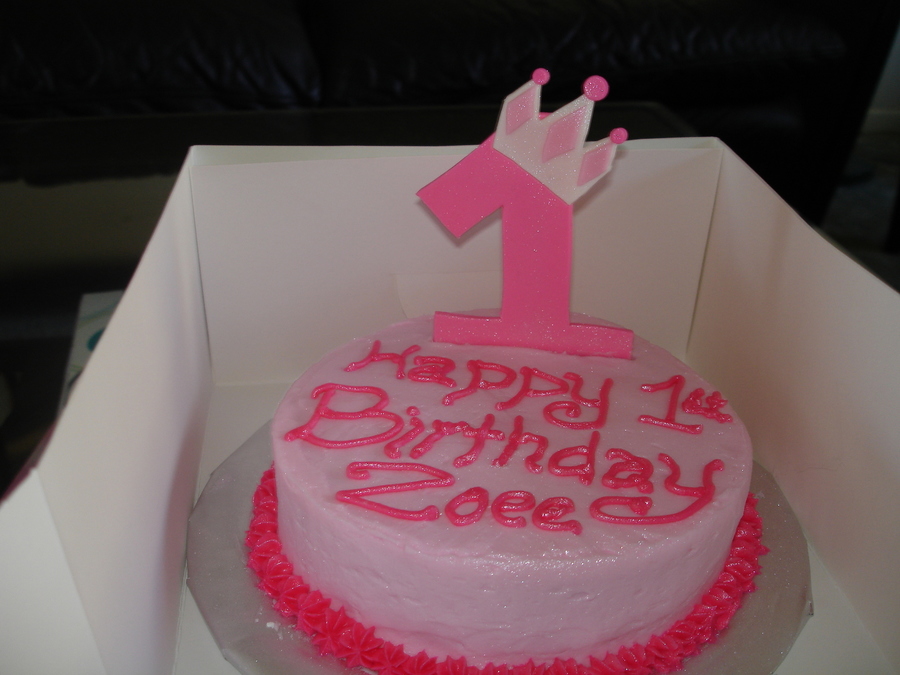 This cake was requested to have "lots of pink" and "be very girly" so this is what I did. The whole cake is buttercream with fondant accents and a gumpaste crown. Then it was blown with shimmer dust. The smash cake has birthday wishes with a gumpaste NO. 1 on it. TFL