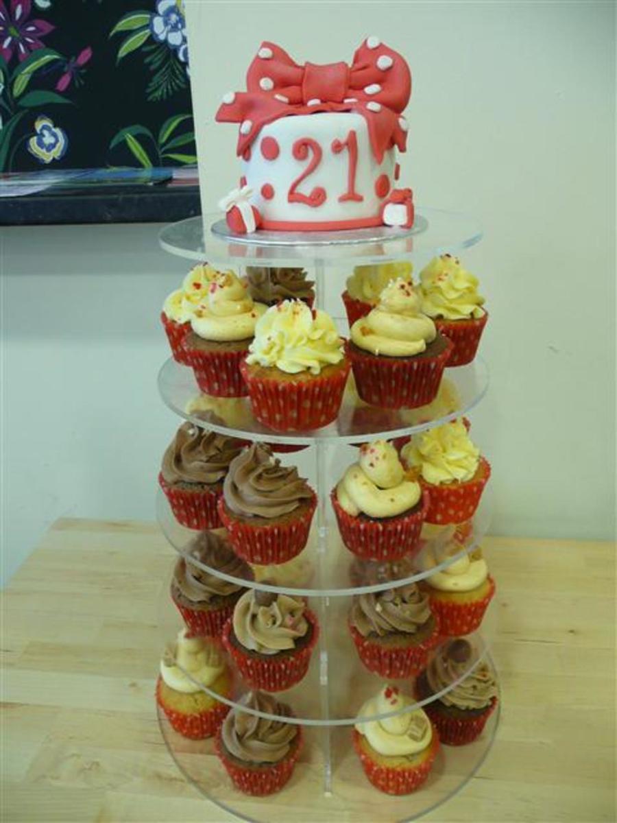 this was fun - 4 inch cake and 30 cupcakes in red and white theme.