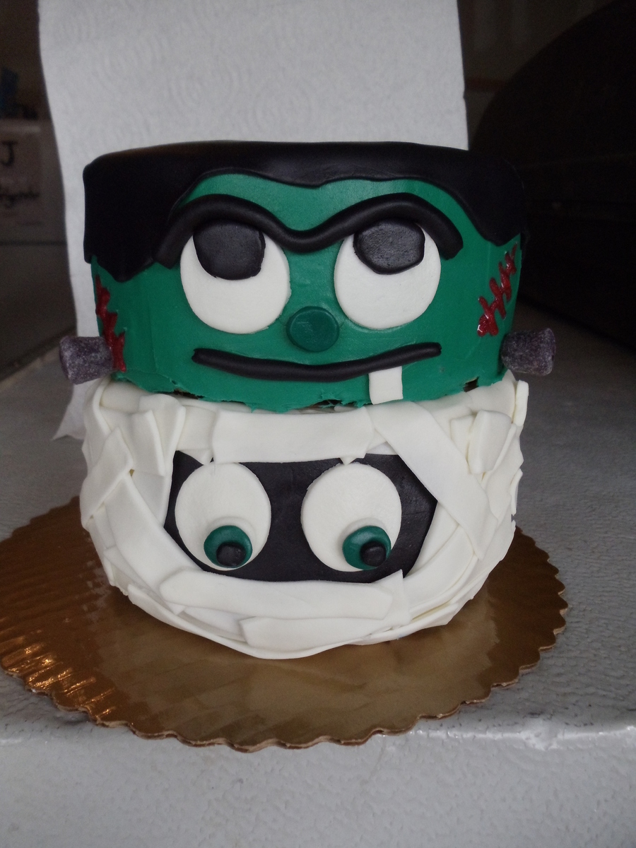 Idea inspired by cristyinmiami, was intended to be a triple set, but somehow my bottom Dracula cake buckled under the pressure of the other two monsters!!