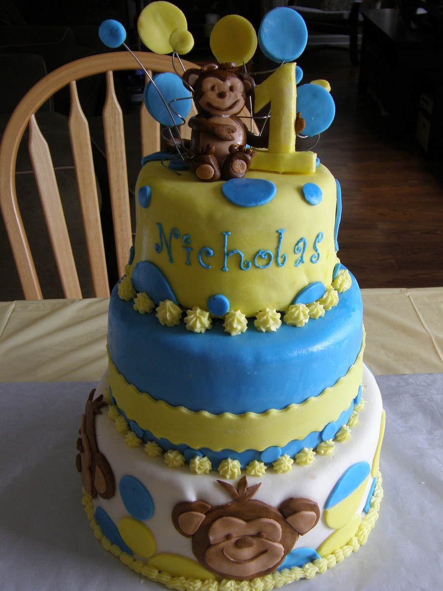 Fondant monkey on fondant cake. Thanks to all of the other mod monkey cake makers for inspiration.