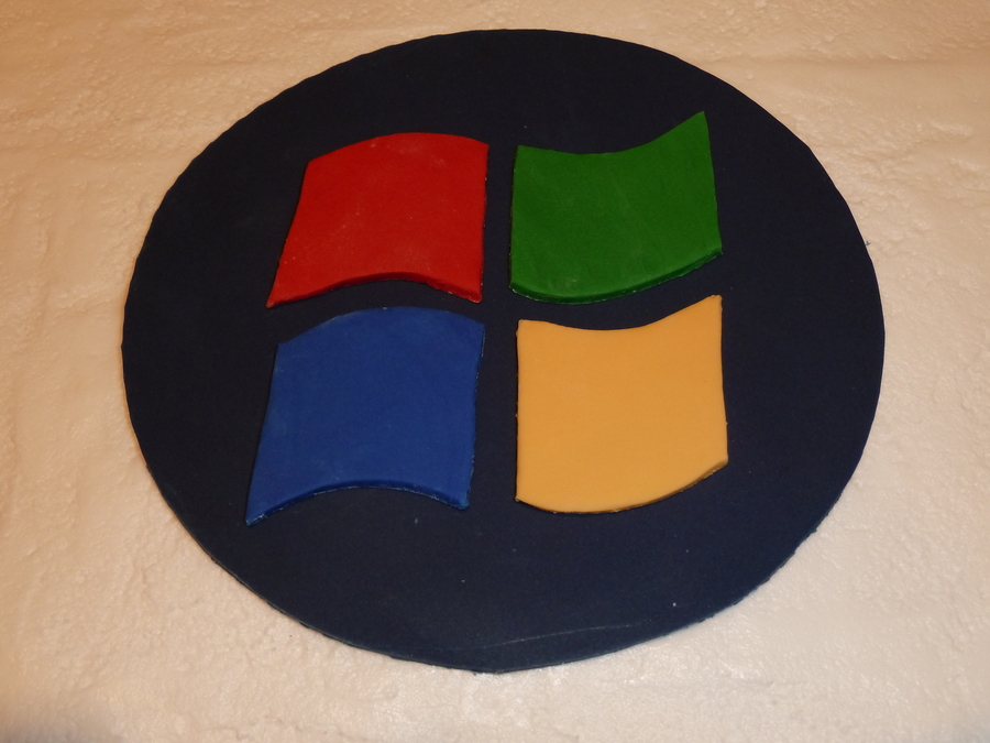 Vanilla cake with butter cream icing and fondant windows logo on top.