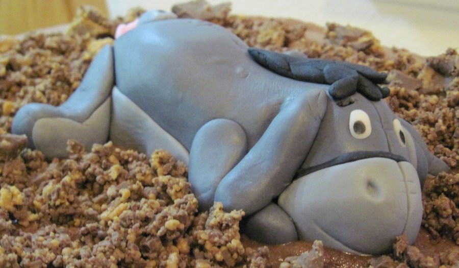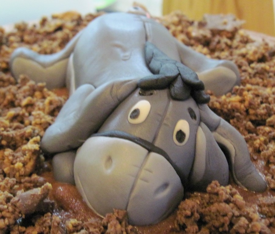 Made a cake for my sister's birthday & decided at the last minute that I could NOT deliver it without some sort of decoration! So, I was able to make this little Eeyore to place on top of her Reese's cake in about 20 minutes. This is my second fondant figure...not perfect but next time I'll give myself more time! Thanks for looking!