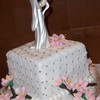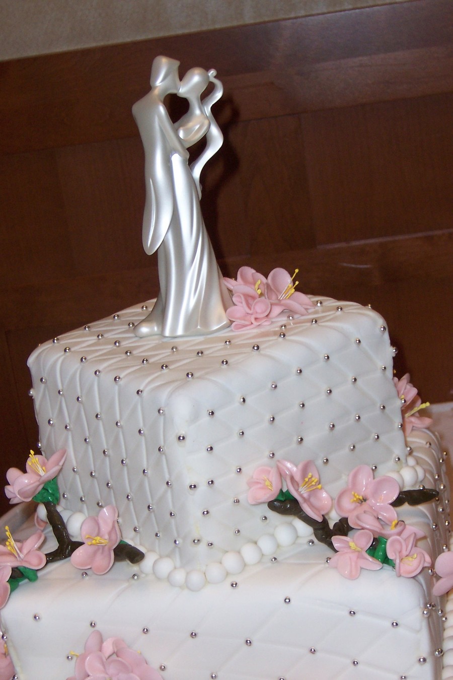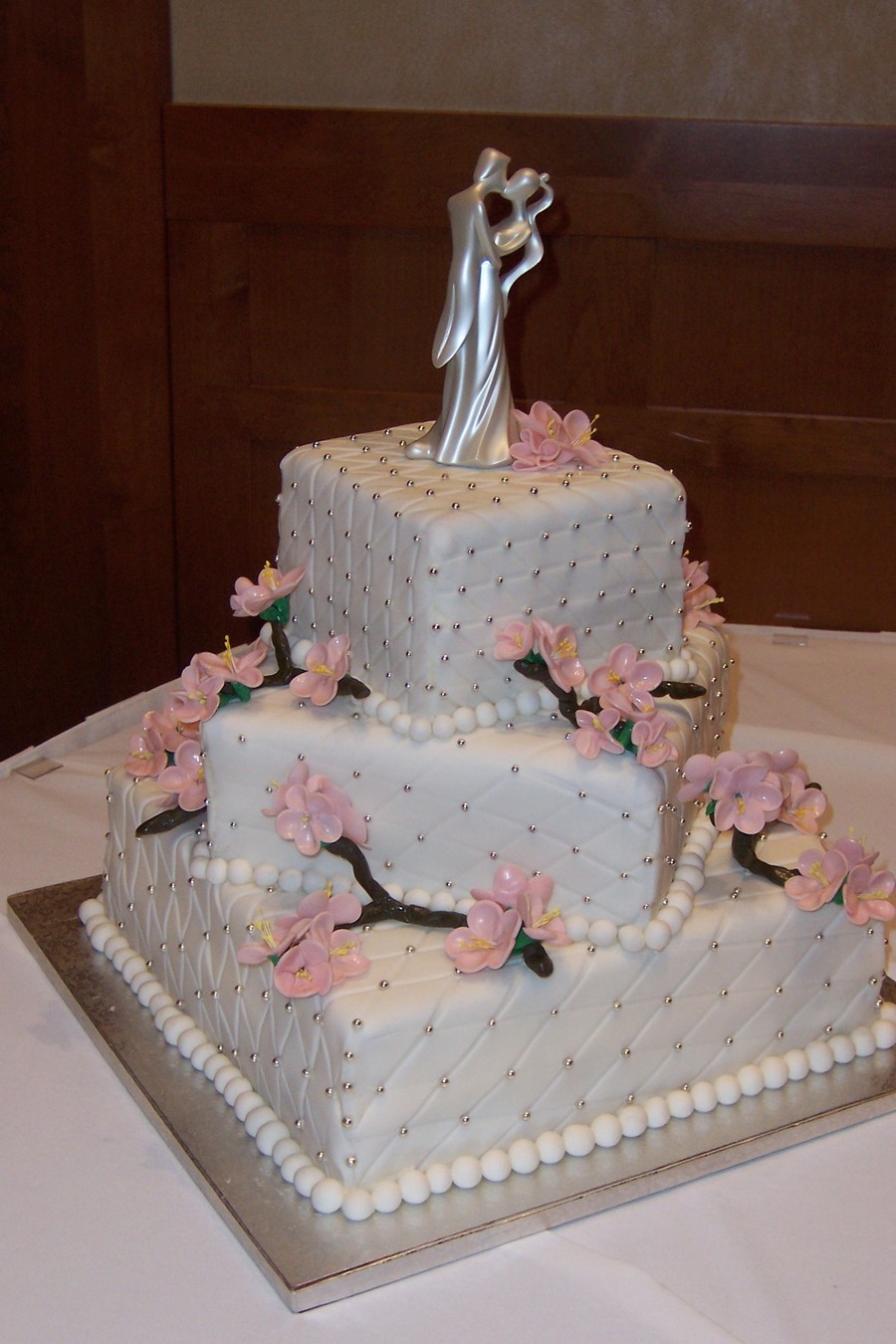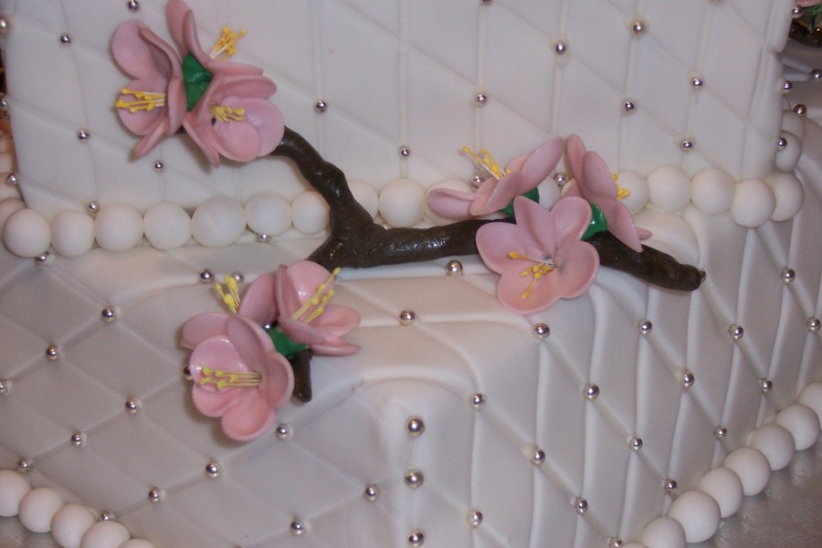 This cake was decorated with fondant, fondant flowers, pearls and silver eatable beads.