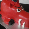 This was made for a razorback fan using 2 12 inch square cakes and 1/2 Wilton ball pan for the hump. This was my first scuplted cake and it seemed really easy! The cake is covered in marshmallow fondant with fondant accents. The feet are cake and the fur piped down the back is a stiff buttercream. TFL