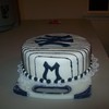 New York Yankees cake. This cake is french vanilla and chocolate marble cake with a layer of chocolate ganach, and vanilla bc covered with MMF