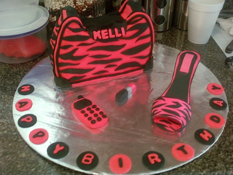 The cake was for my 14th year old niece. I had a blast making the accessories. All accessories are fondant. Shoe is a combination gum paste and fondant.