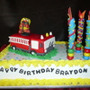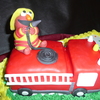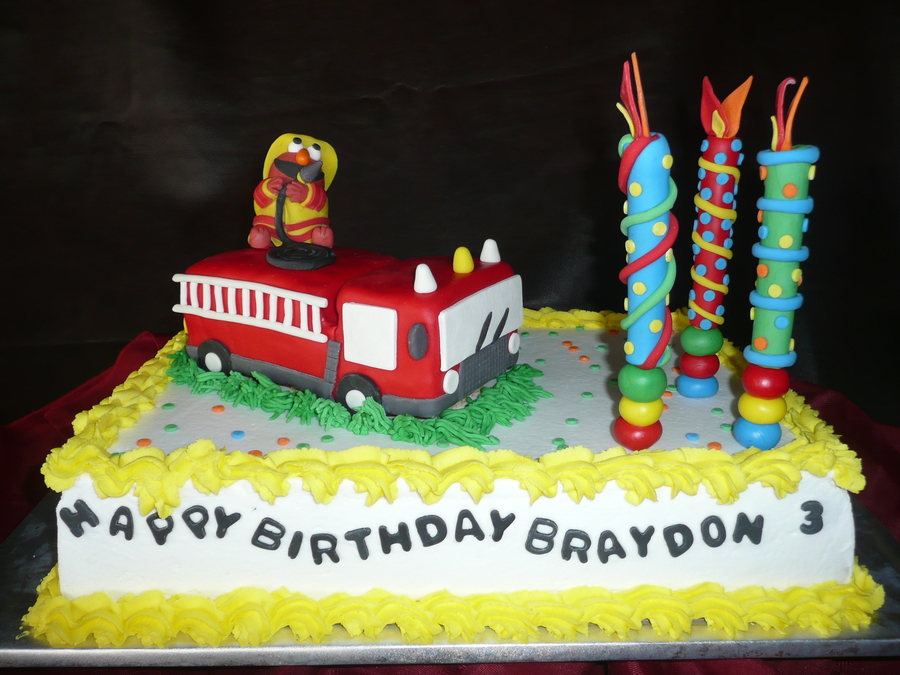 Elmo with fire truck for a three year old. With white cake and raspberry lemon filling.