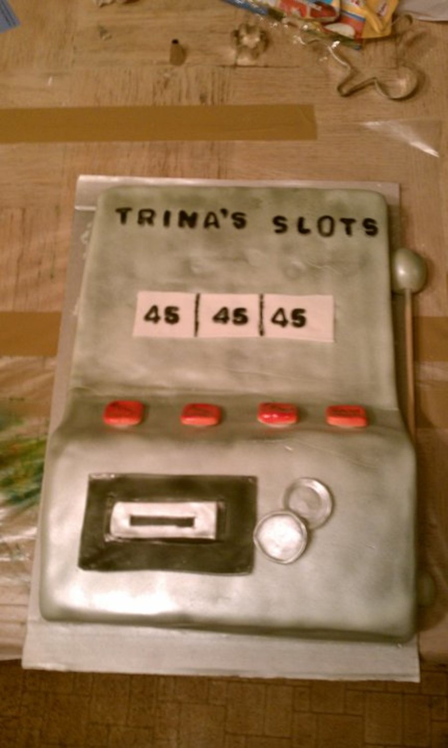 a marble cake with vanilla cream filling. Covered and decorated in fondant.