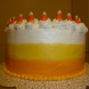 This is a simple buttercream frosted cake, designed after the colors of candy corn.