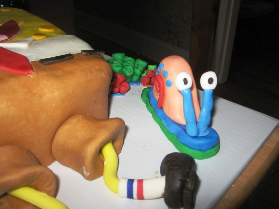 WASC covered in fondant. All decos are made with fondant . Birthday cake for my friends son. Gary is also made from fondant.