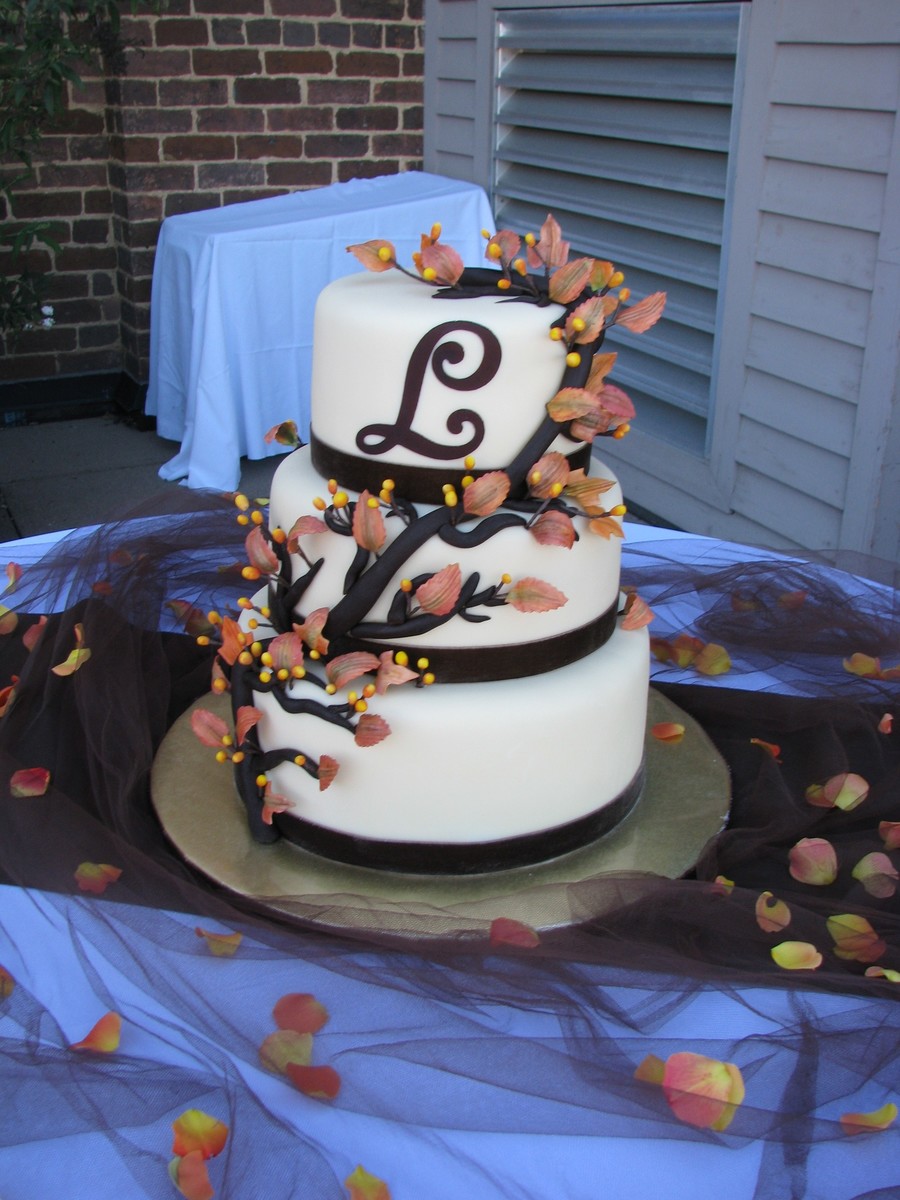 All White chocolate fondant with gumpaste leaves and choc fondant branches
