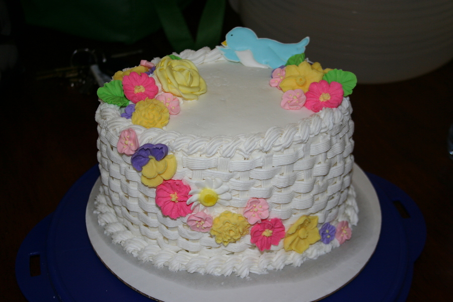 This was my first basket weave. I did this in my wilton's cake class. Also the first time I ever used Royal Icing. It was fun!