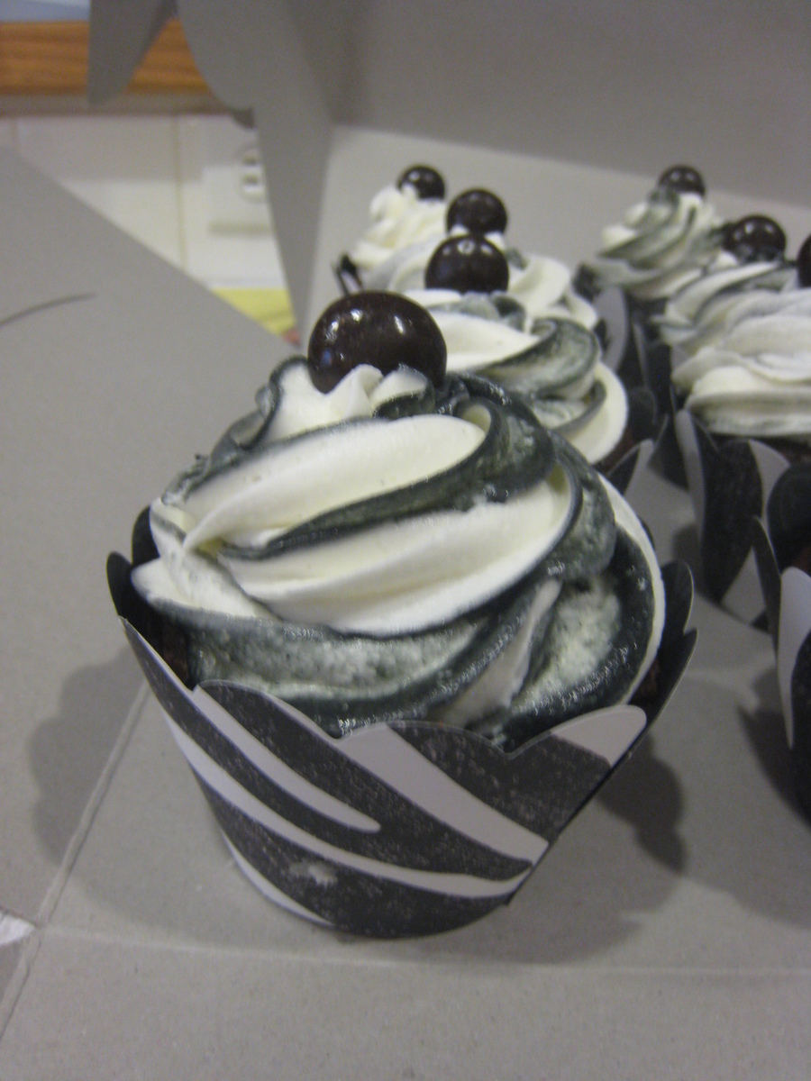 Yellow cake, peppermint BC zebra cupcakes made for a church auction for schools in Africa