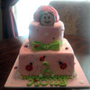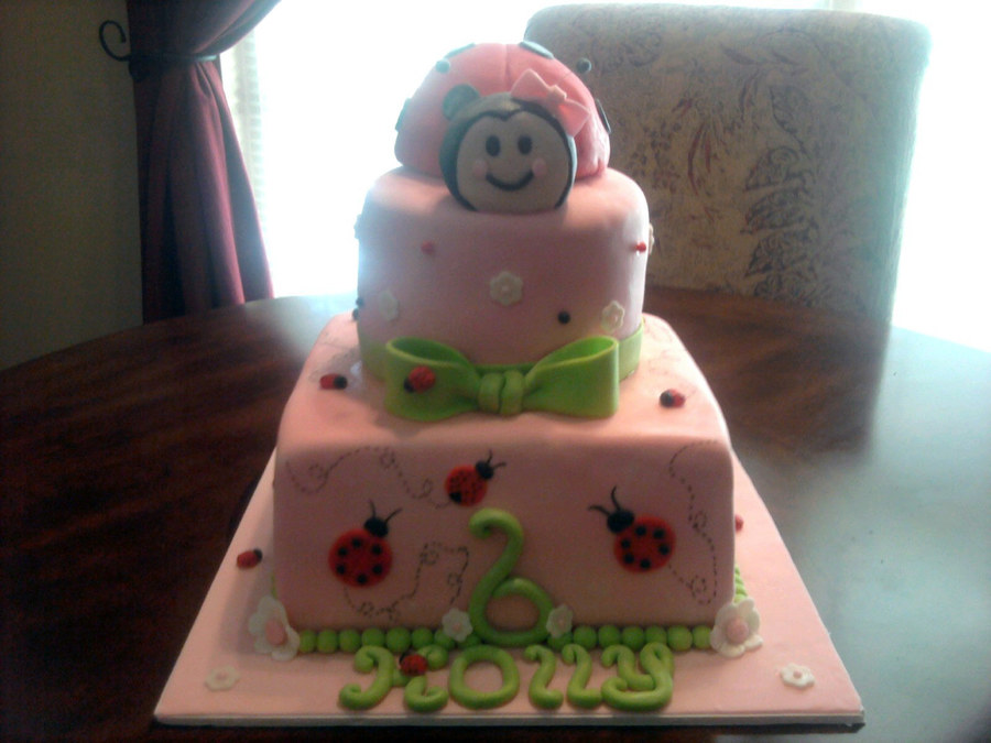 a popular cake for me. a 2 tier pink cake with red ladybugs. So adorable!