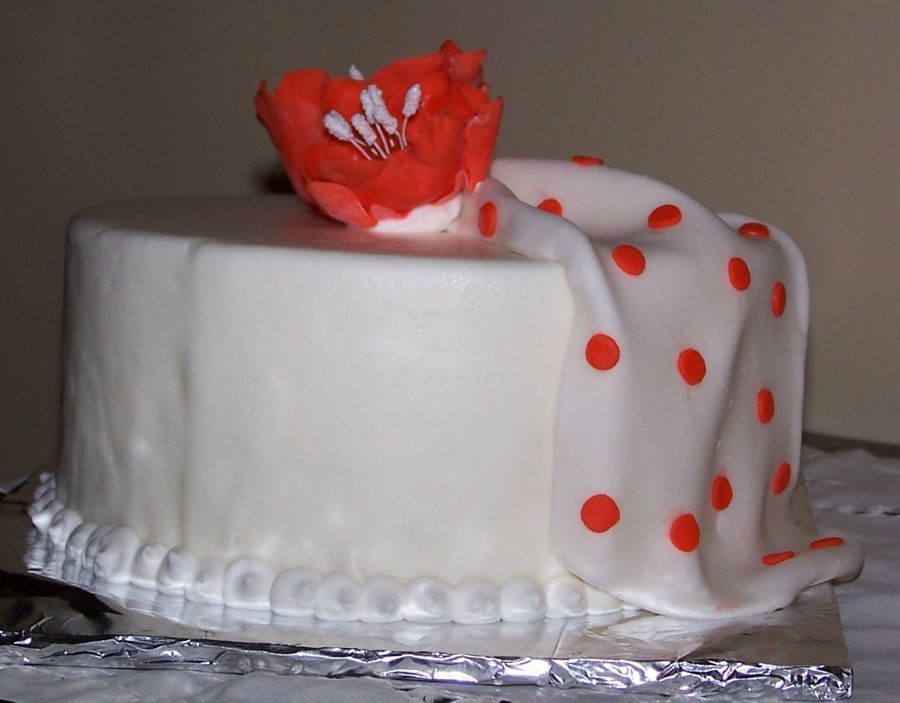 This is another cake I did for the class preview. The flowers are fondant fantasy flowers with the fodant drape. It is a dummy cake.
