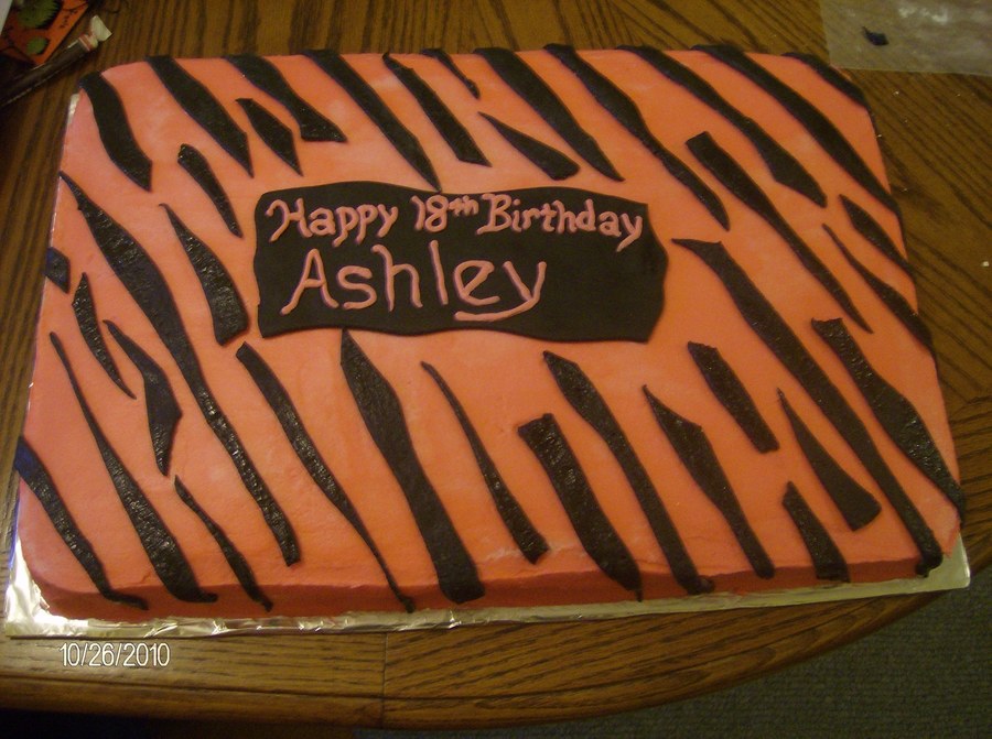 This is my first try at a zebra print cake. Frosted with buttercream stripes are done with fondant.