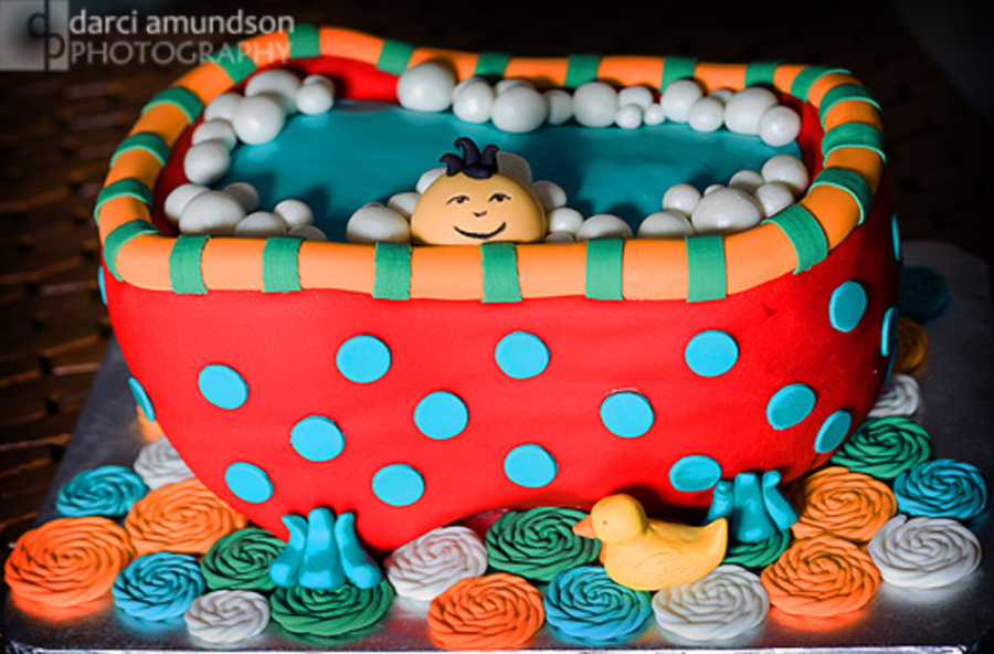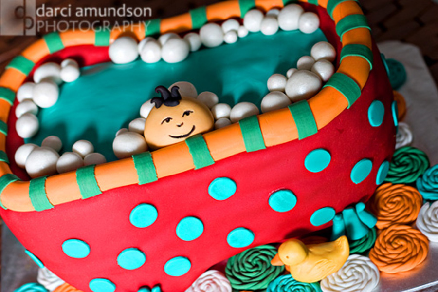 Inspired by all the great baby in a tub cakes on CC. Chocolate cake with strawberry buttercream.