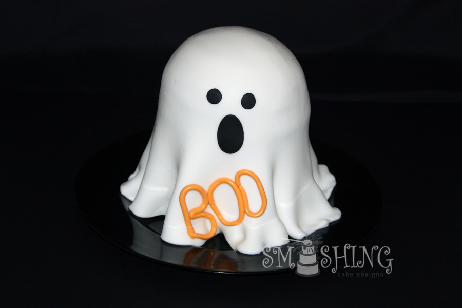 A Ghost cake for my kids daycare. I struggled a bit with the ruffle at the bottom as the fondant just kept stretching and getting longer and longer....err. This is done with 3 6" rounds and one half dome on top.