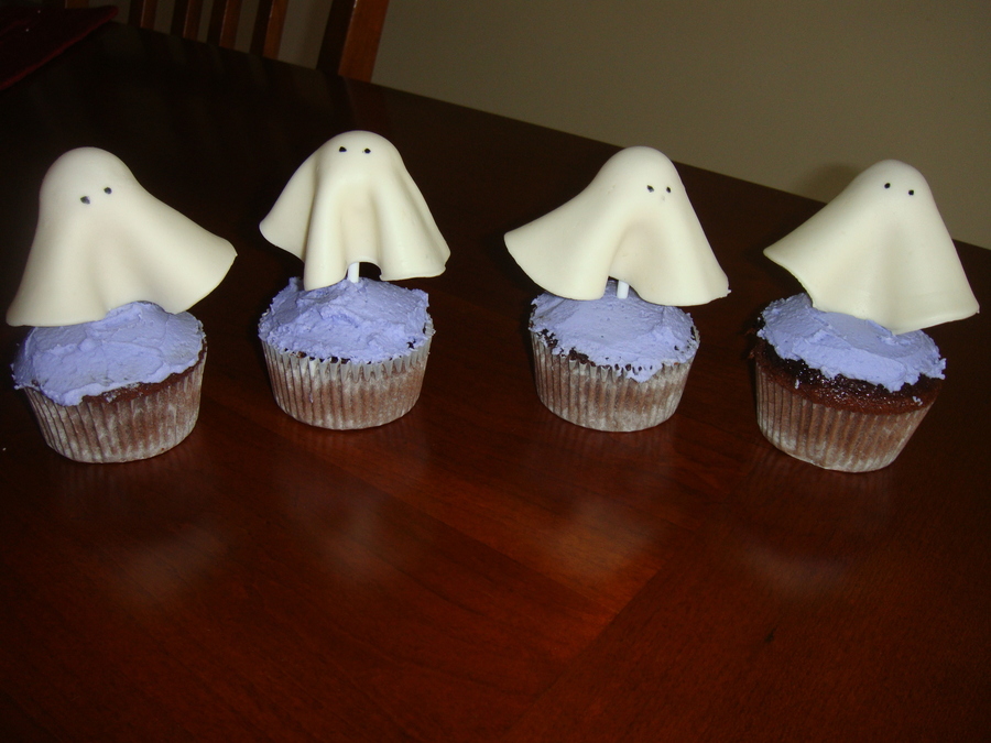Chocolate cupcakes, BC icing and floating ghosts made of fondant