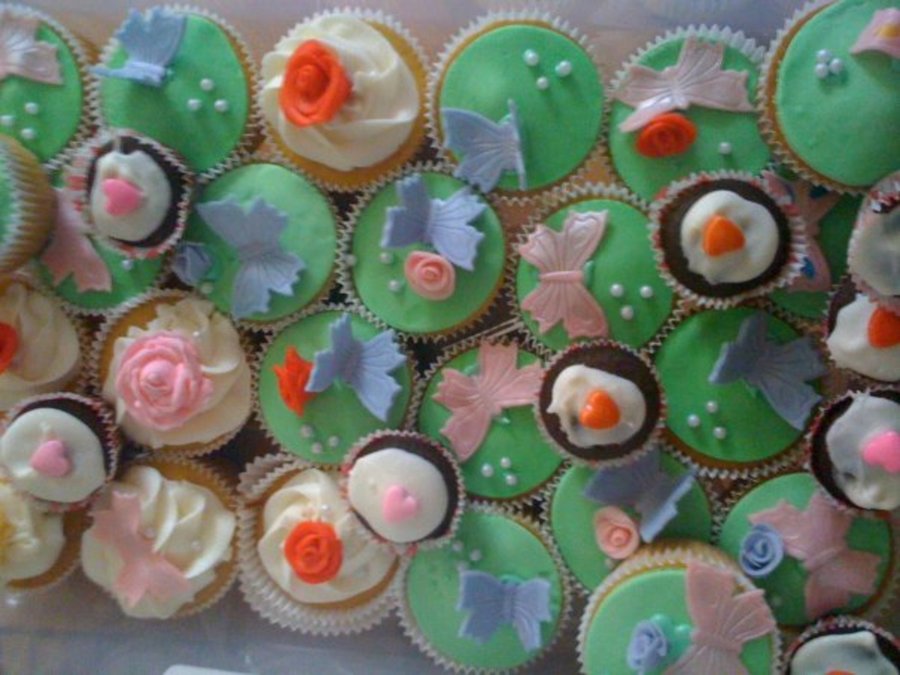 Made these for my daughters birthday, fondant decorations, I made the butterflies and covered them overnight, the next morning they were melting :-( chocolate and vanilla cupcakes