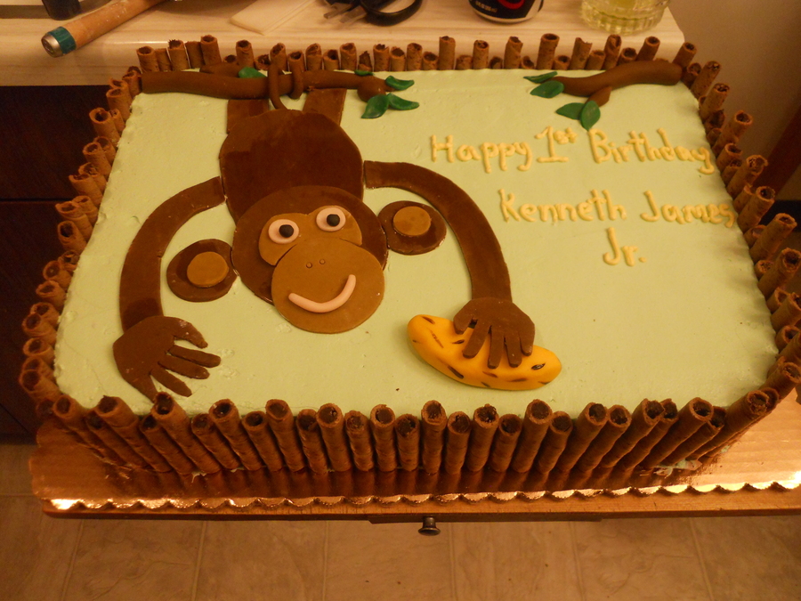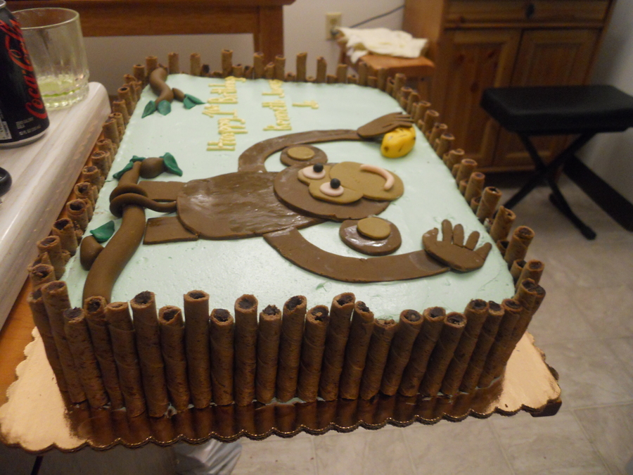 Marble cake, WBC, fondant monkey, cookie sticks for the bamboo