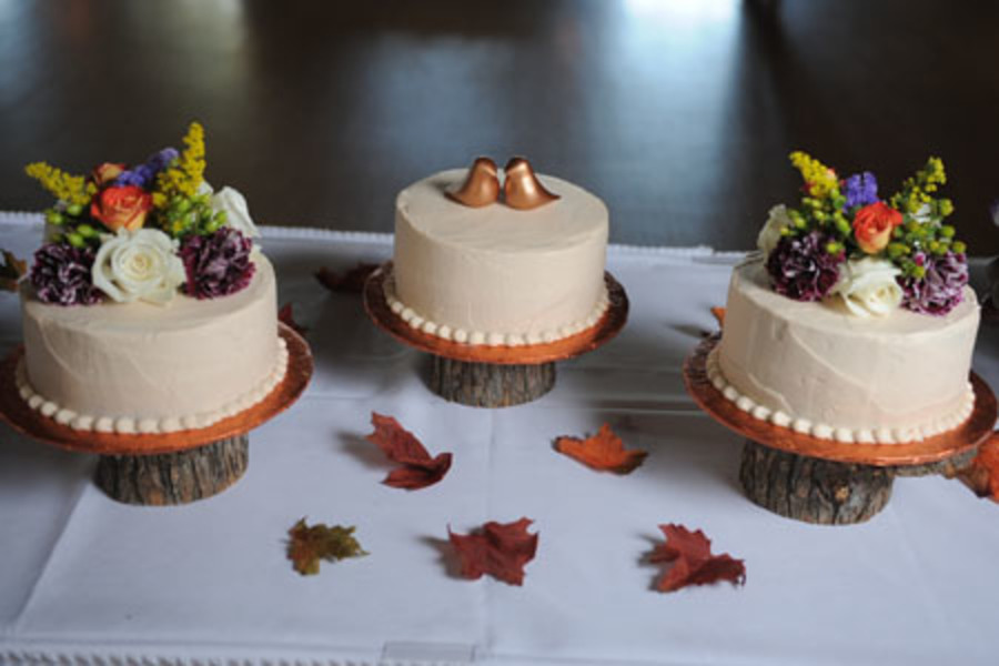 I was a bridesmaid in my cousin's wedding, and also did the cakes. She wanted 3 8" rounds in a tan color, and 130 cake pops:) All buttercream on the cakes-TFL