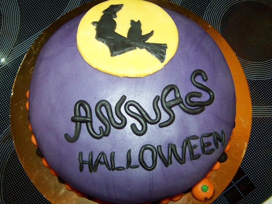 For an 11 year old girl. I'm not that happy with how it turned out but will upload it anyway... All she asked for was a witch, a cat and their names (Anna and Bamse). Filled with custard, raspberries and whipped cream. Covered with marzipan. TFL and Happy Halloween!