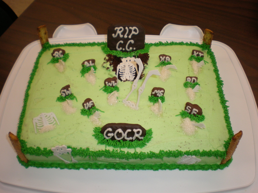 This cake was made for a Halloween staff meeting, but also celebrating a birthday.