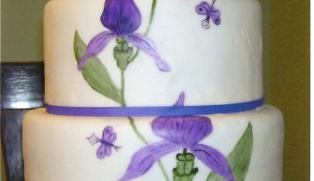 Bride wanted this cake to have fake flowers on it. Chocolate cake with peanut butter filling.
