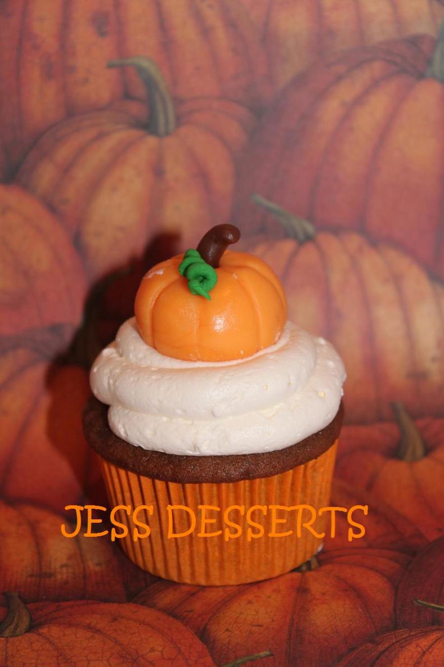 This is hot cocoa cake with marshmallow frosting, topped with an adorable fondarific pumpkin.