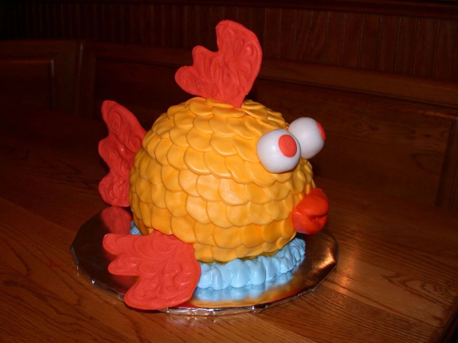YumFrosting on 19 Jan 2006 , 12:51pm I love it! Are this fins made of fondant, and is that the sports ball pan? It is adorable!
