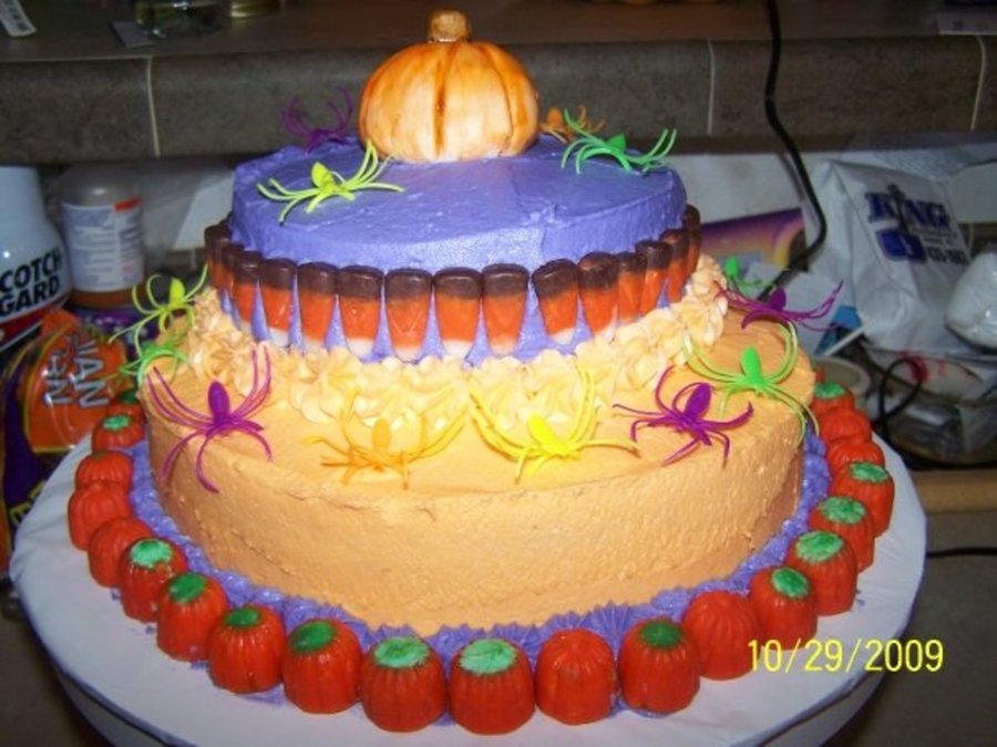 Its a two teir cake and the pumpkin ontop i made of fondant.. then hand painted it.