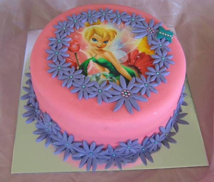 Chocolate cake with strawberry buttercream filling, covered in fondant. Flower border inspired by Bluehue.
