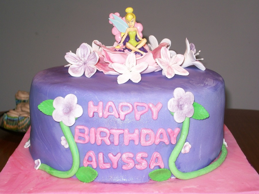 Tinkerbell birthday cake for one of my wife's co-worker's daughters. Covered in fondant, decorations are gumpaste. Tink is a candle.