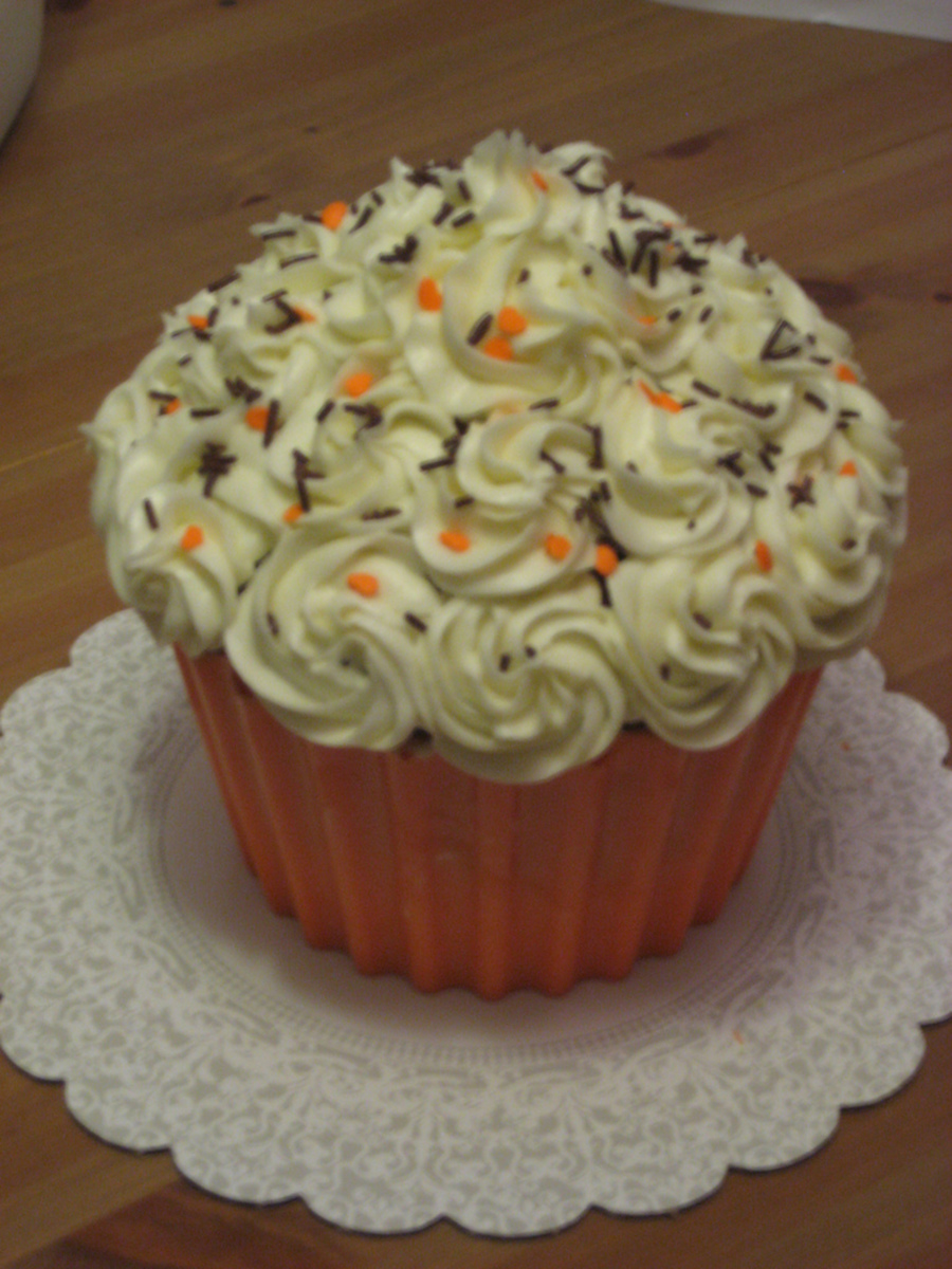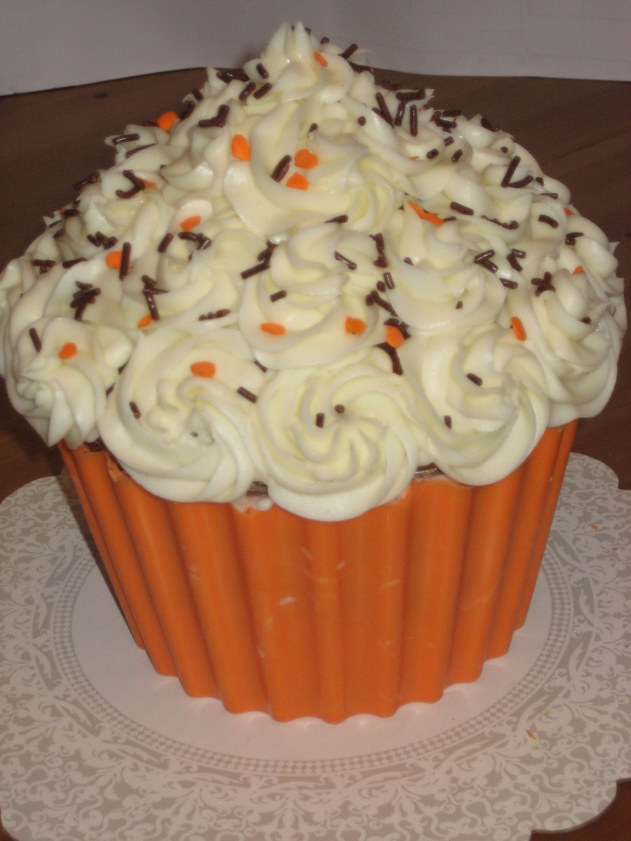 Made this with the Wilton giant cupcake pan. The cupcake shell/liner is made from melted candy using the pan as a mold. Got the idea from others on this site. Thanks!