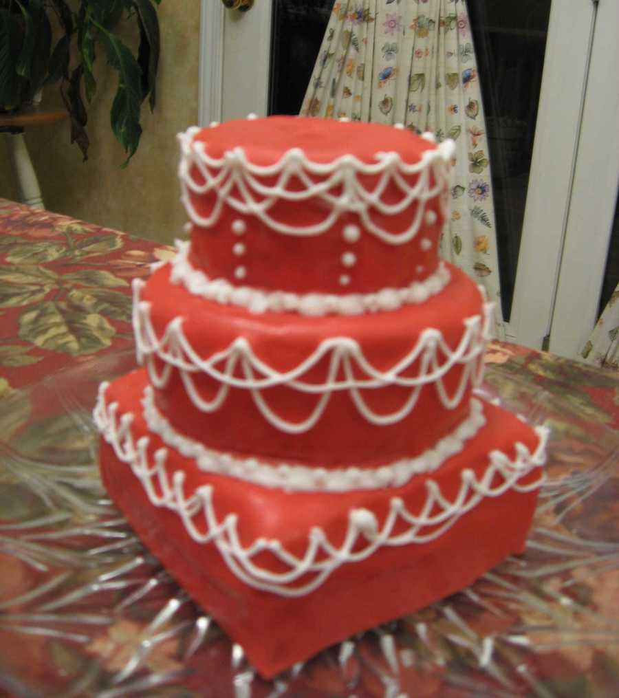Just for fun to practice piping. Top is 2 inches, middle is 4 inches, and I think I used a 6 inch square on the bottom. Love the mini cakes...