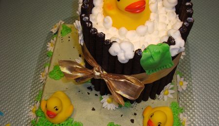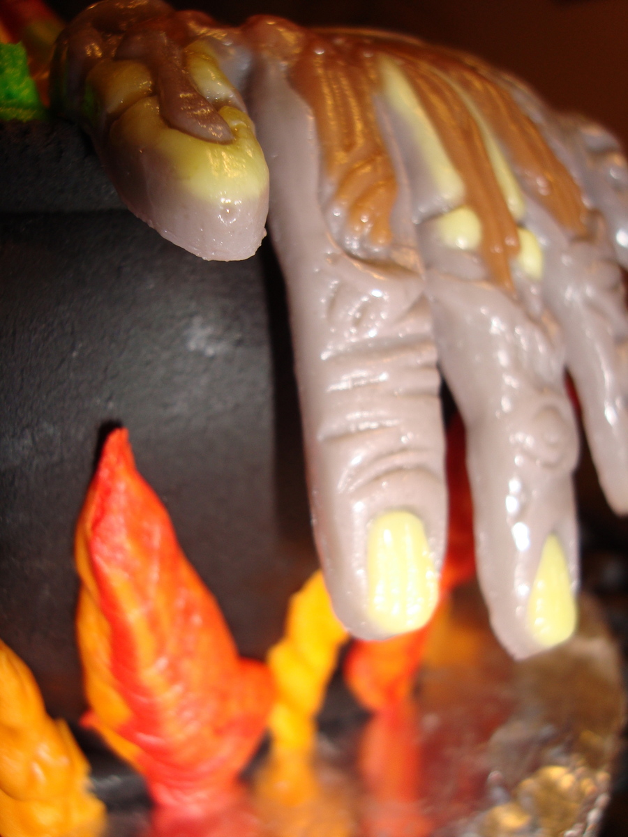 Made for a cakewalk at the school where I worked. Gummy candy filled the chocolate cake and chocolate fondant pot!