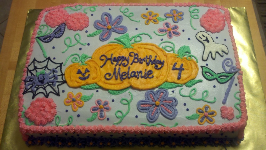 The request was made for a simple sheet cake with 2D pictures in buttercream only (no fondant). The birthday girl had princess figurines that she was adding to the cake (where the pink icing circles were) for additional decoration.