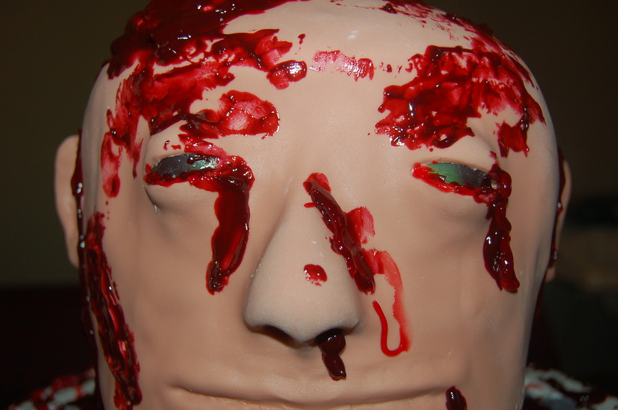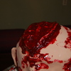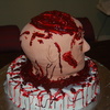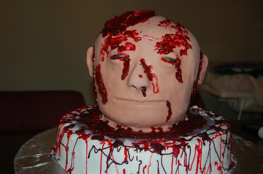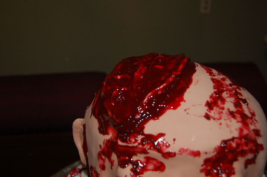 Head and base are all cake the "blood" is colored piping gel, this is the grosest thing I have ever done or will ever do again.