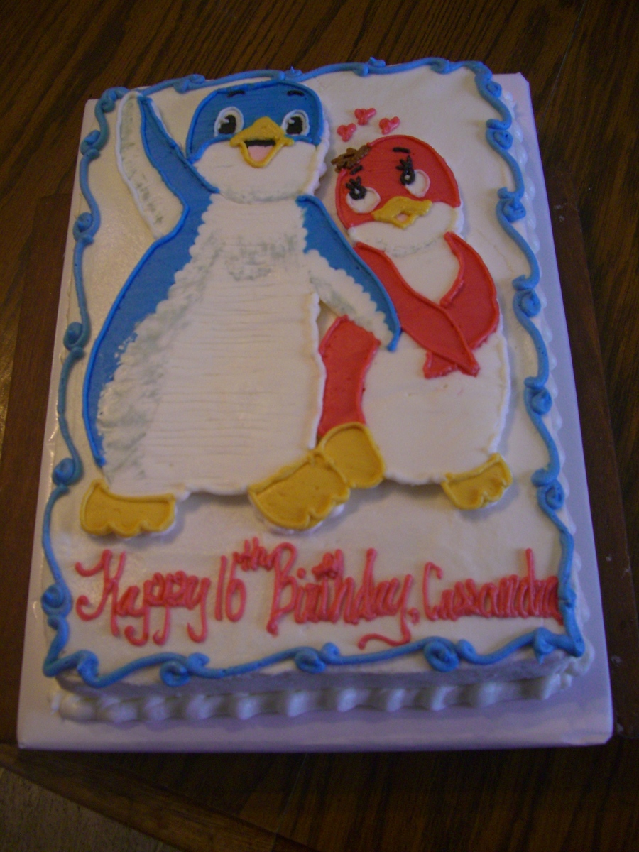 This was done for a gal who loves penguins. White cake with buttercream icing and the penguins are FBCT.
