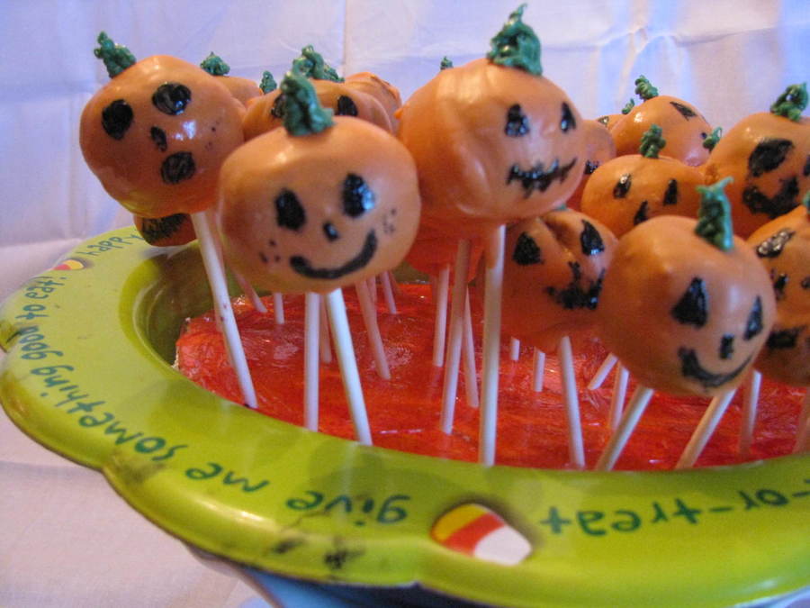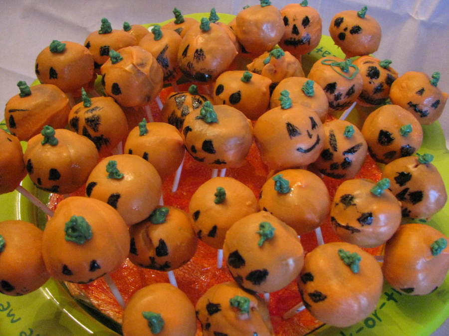 Red Velvet Pumpkin cake pops. This is the first time I made them. Took a while to do them but they were cute and enjoyed by all at the party. Thanks for all the tips I found on here.