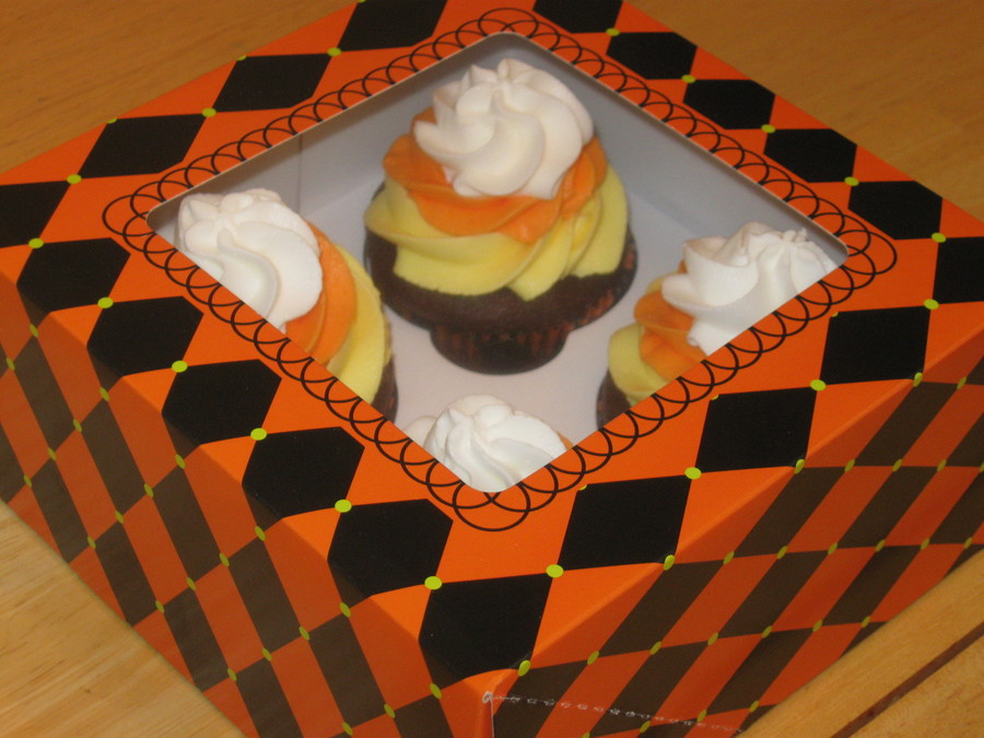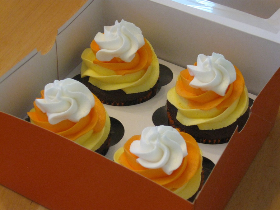 These were done for the cake walk at our church's Fall Carnival - chocolate cupcakes topped with a vanilla buttercream swirl in candy corn colors! TFL! :)
