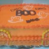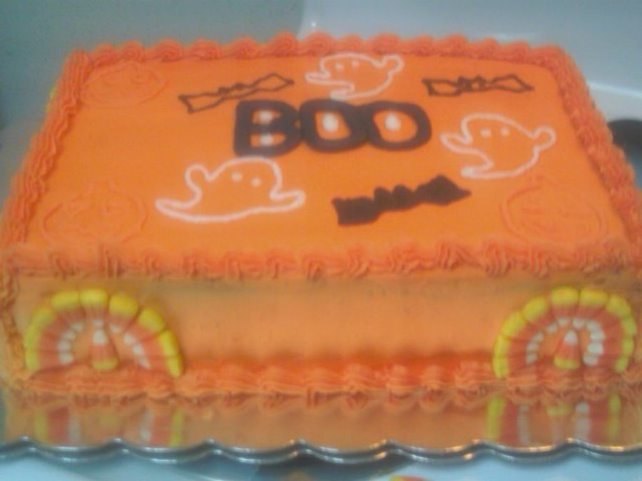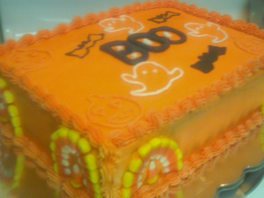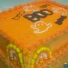 Yellow cake with orange buttercream frosting.