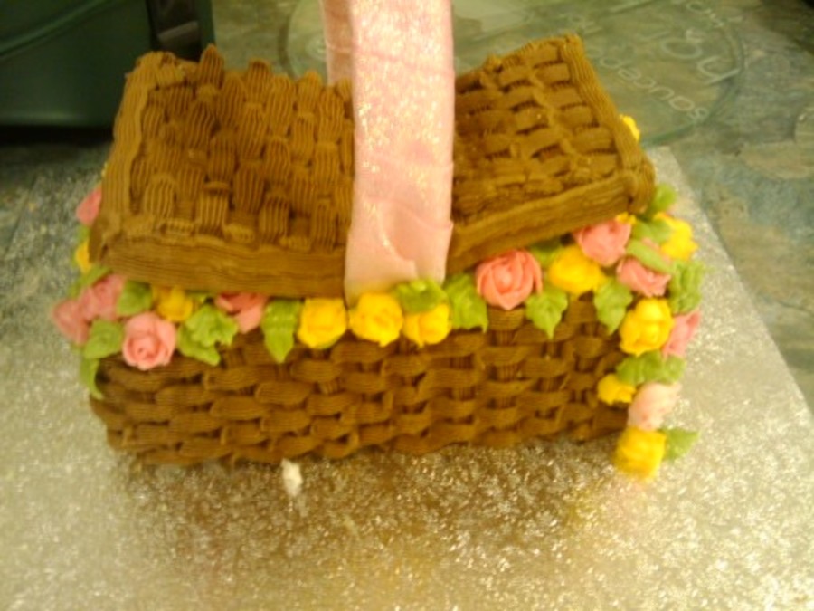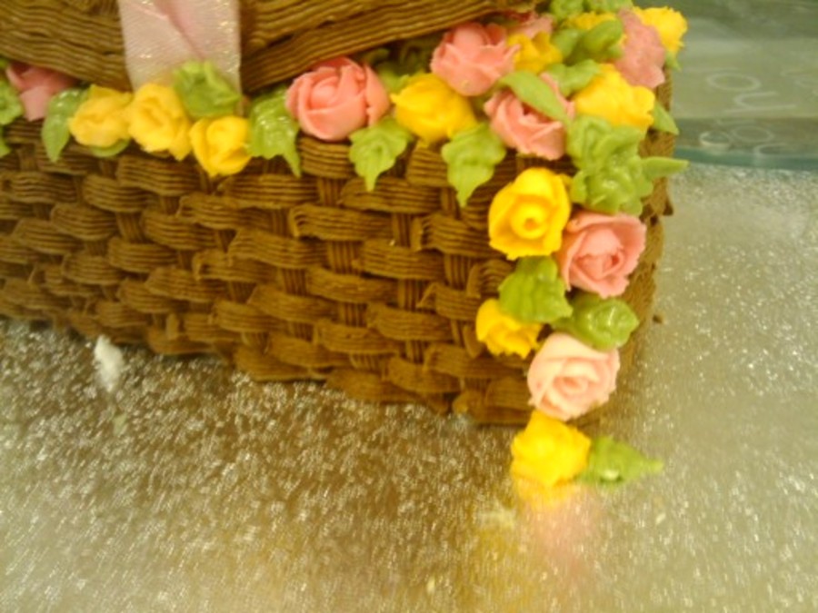made this in class as part of our examination for the first somester. Its a maderia cake with basket weave and hand piped roses and leaves. Makes a brilliant easter persent.