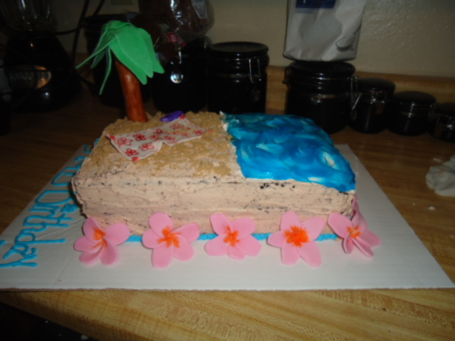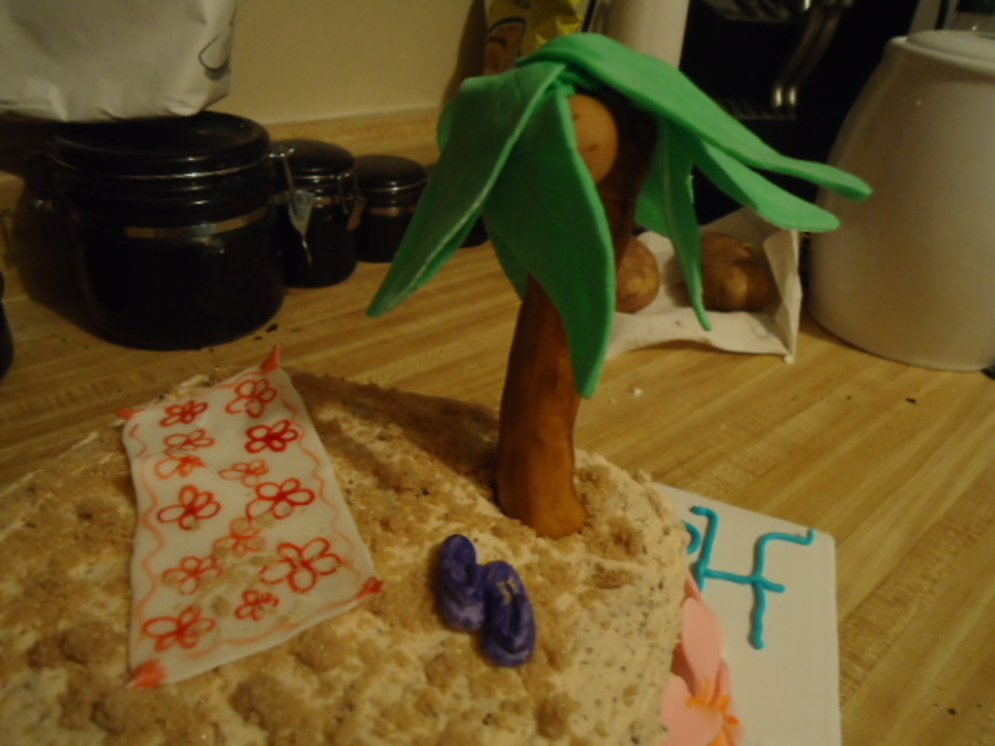 This was a bday cake for my friend. All butter cream and fondant. brown sugar sand, the details include a towel, slippers, and coconuts on the palm tree!