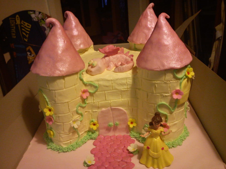 choc mud cake, covered in butter cream with fondant features,dragon and a princess doll. this was for my daughters 5th birthday, and the first thing she asked, '.where the unicorn'!